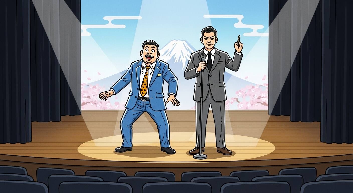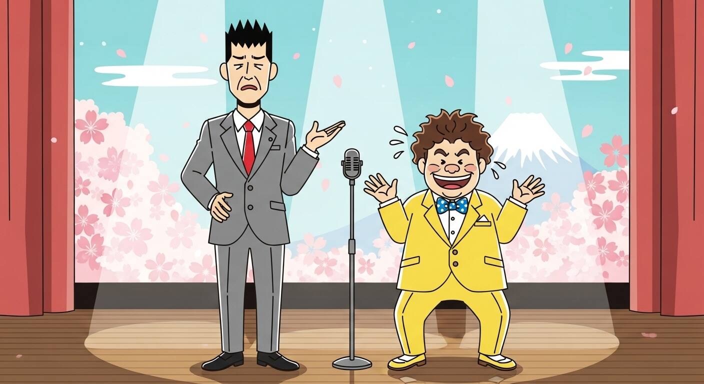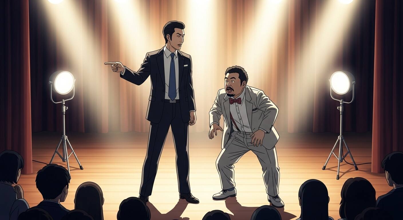 お笑いライブやテレビ番組を観ていて、「上手(かみて)」や「下手(しもて)」という言葉を耳にしたことはありませんか。芸人さんたちが舞台の袖に戻る際や、立ち位置を説明する際に頻繁に使われる専門用語ですが、どっちが右でどっちが左か、パッと判断するのは意外と難しいものです。舞台用語は、お笑いをより深く楽しむ...